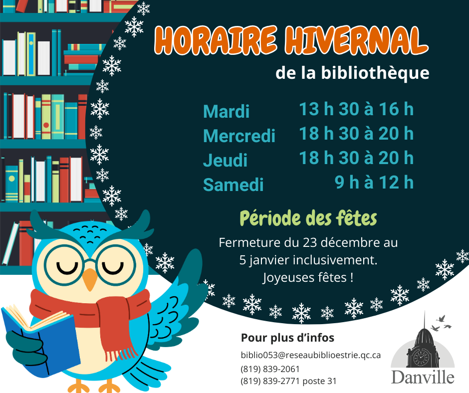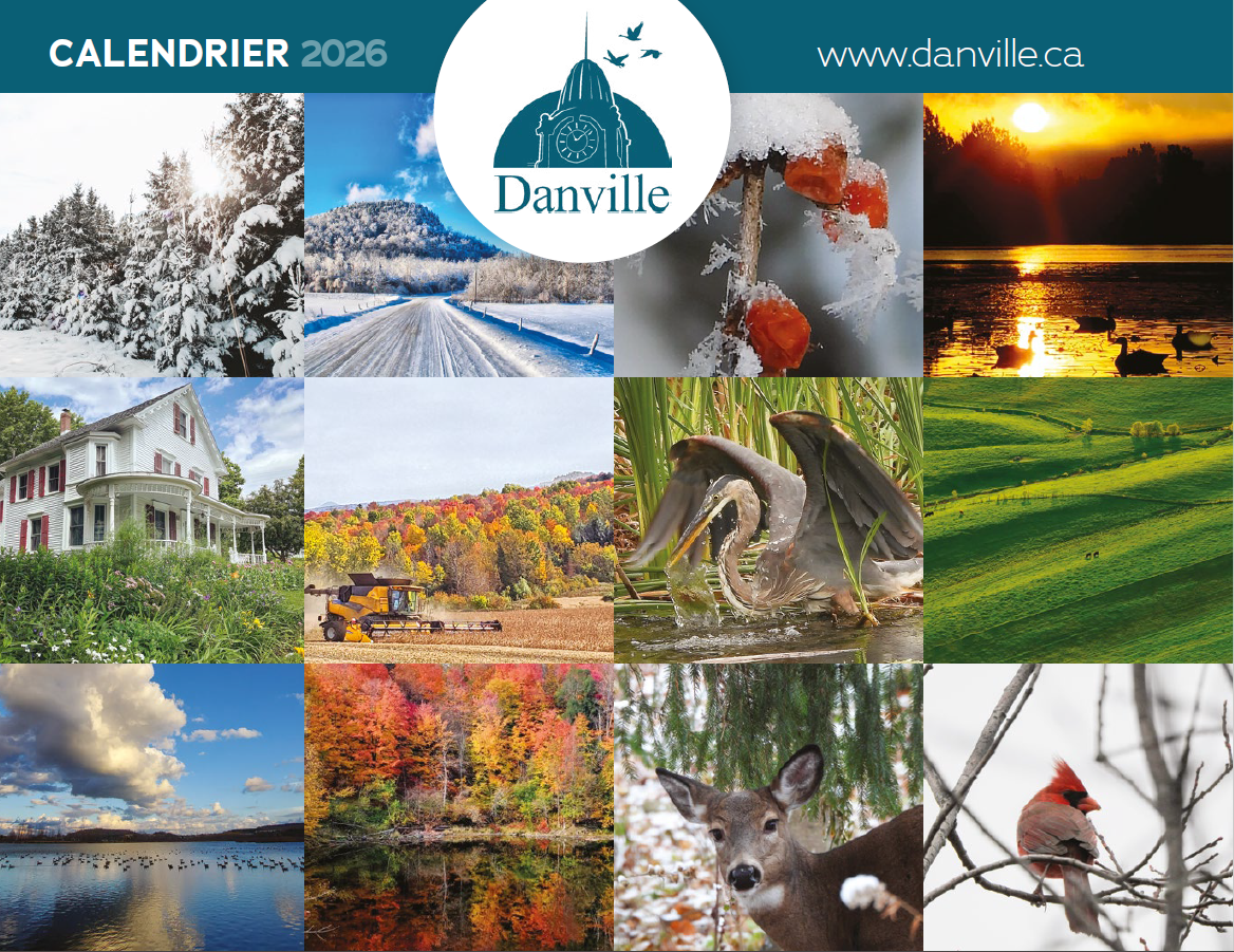La Ville de Danville informe ses citoyens que le Calendrier municipal 2026 sera distribué par la poste au cours de la semaine du 22 décembre 2025. Vous le recevrez directement à votre domicile. Des exemplaires seront aussi disponibles à la réception de l’hôtel de ville sur les heures d’ouverture.
