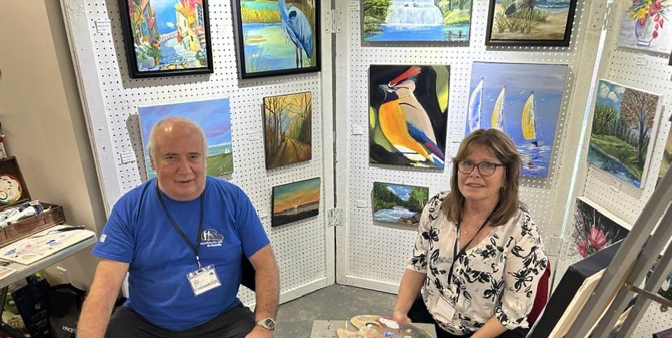 De son côté, Mario Morand propose avec Sur la route à St-Adrien (12 x 16) un paysage naturel vibrant, où des arbres majestueux et une chute d’eau se déploient au cœur de riches couleurs automnales. L’ensemble offre une atmosphère chaleureuse et enveloppante, mettant en valeur la beauté de nos paysages régionaux.