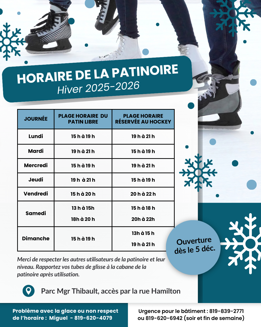 Voici l’horaire de la saison 2025: